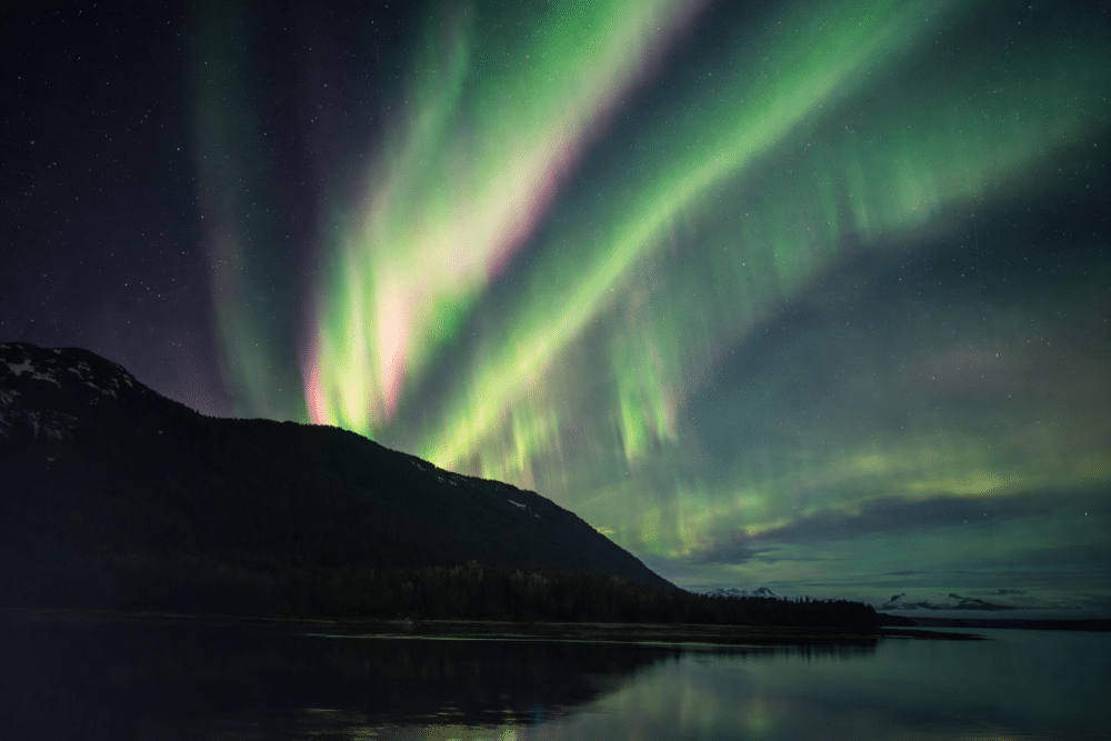 Aurora Borealis over the Wrangell Narrows, Petersburg, Alaska — a rare January display during the most severe geomagnetic storm since 2003.